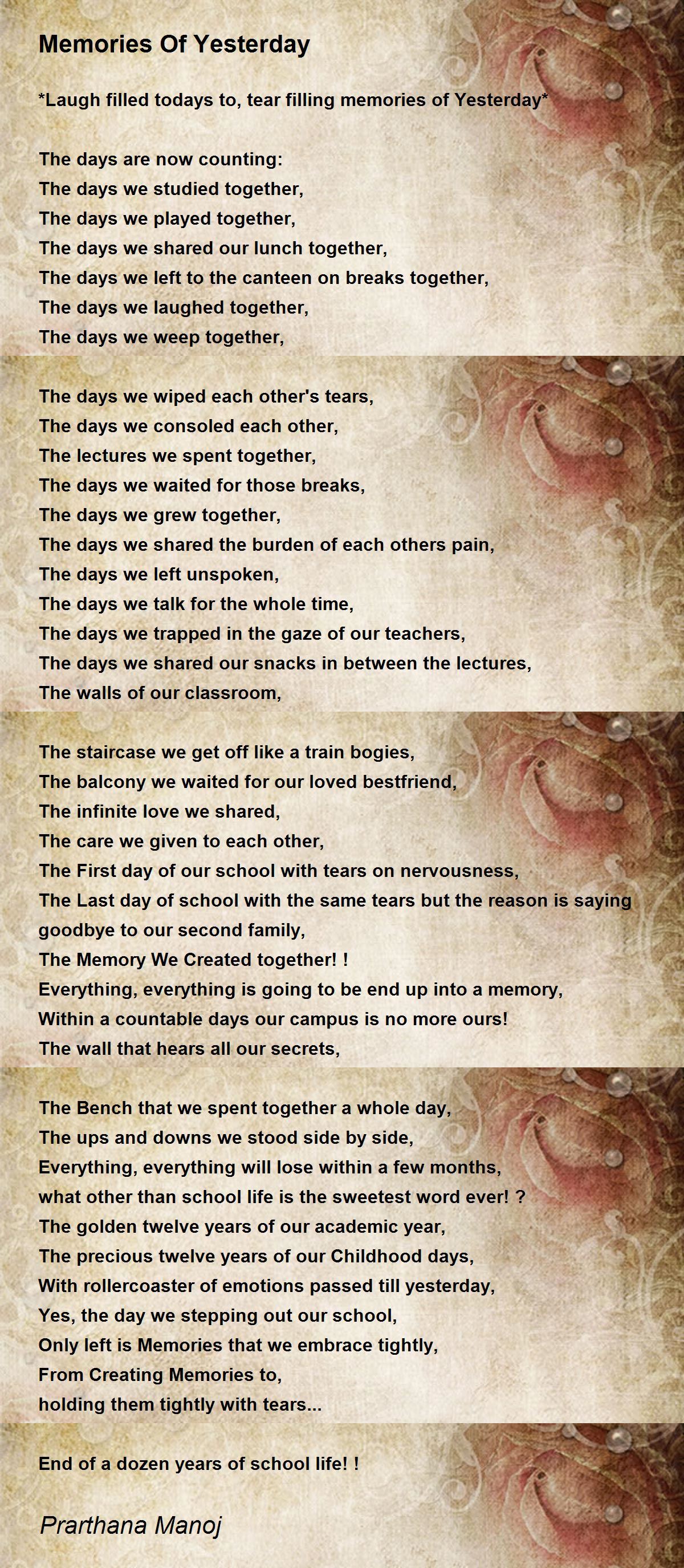 *Laugh filled todays to, tear filling memories of Yesterday*