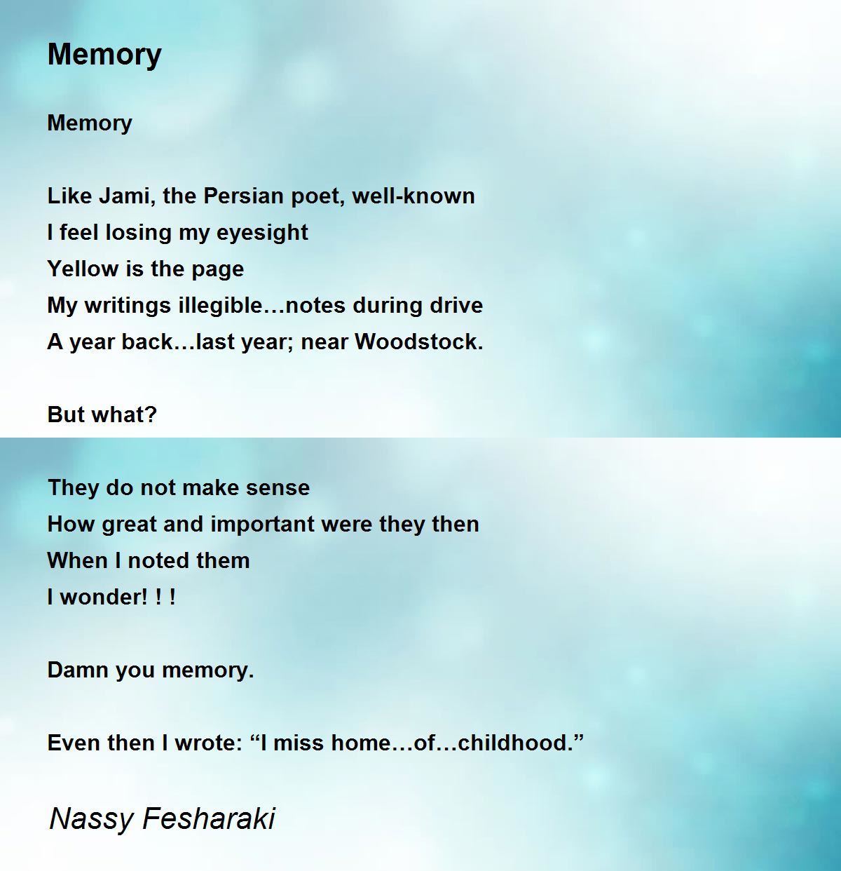Even then I wrote: “I miss home…of…childhood.”