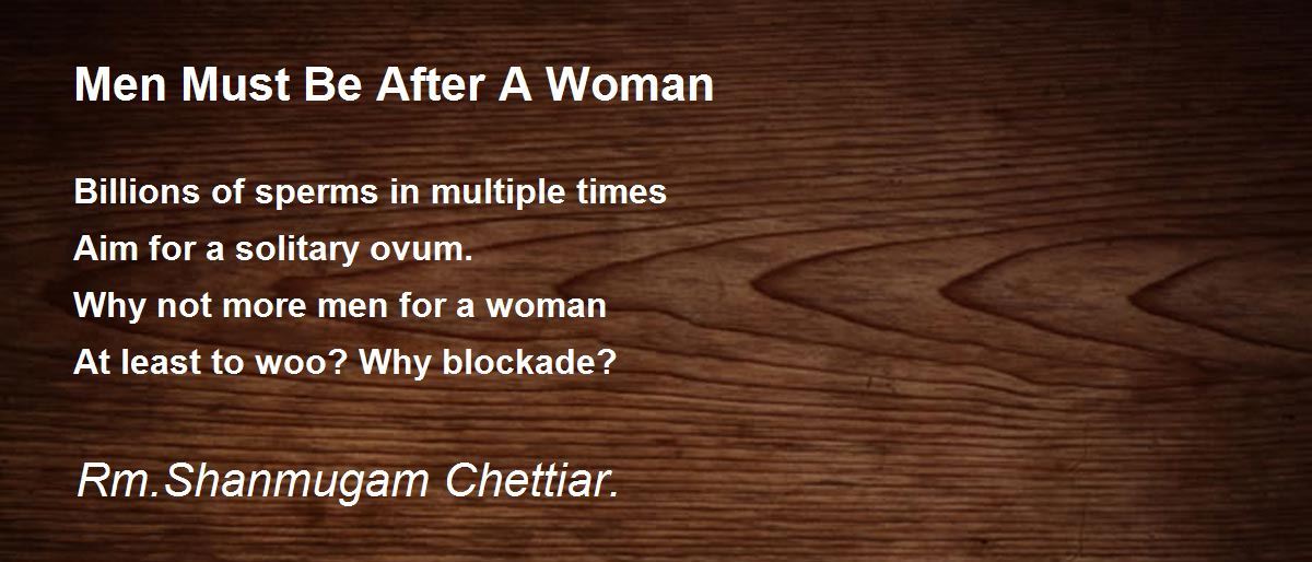 Billions of sperms in multiple times Aim for a solitary ovum. Why not more men for a woman At least to woo? Why blockade?