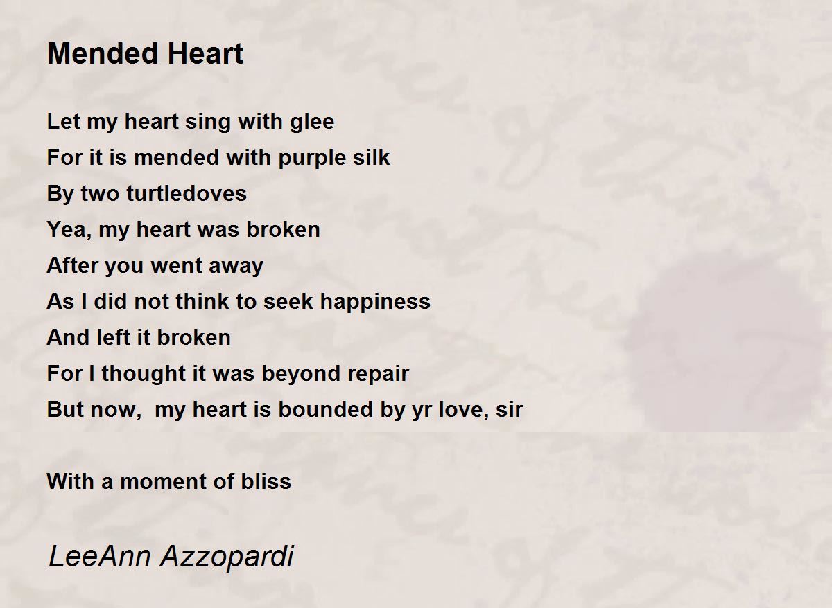 Yes sir broken heart is painful. Life seems all lost but if some showers the love and care it does revives back. Indeed mended heart.