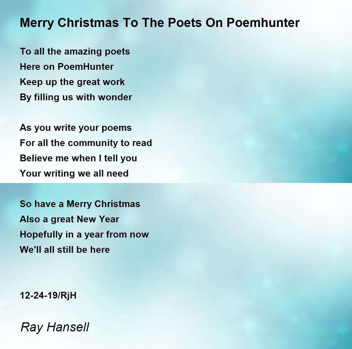 A belated Merry Christmas Ray, and I do enjoy reading your poems, in fact I added you to my favorite poets list. Happy New Years and write on!
