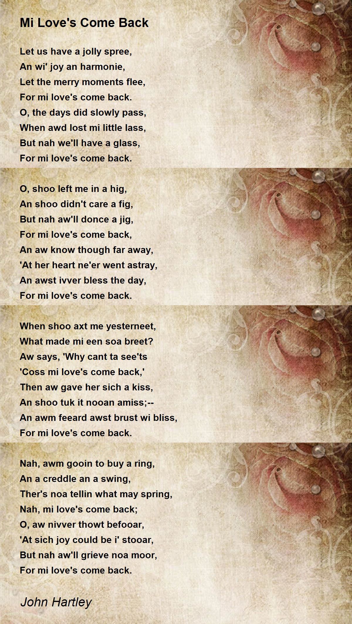 'Coss mi love's come back,'