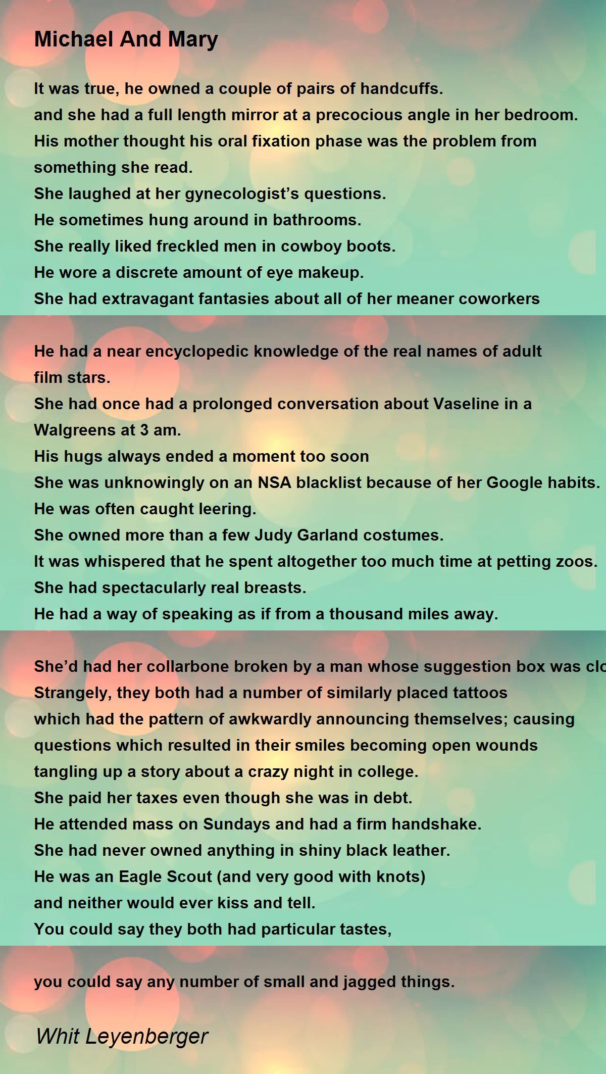 She had once had a prolonged conversation about Vaseline in a Walgreens at 3 am.