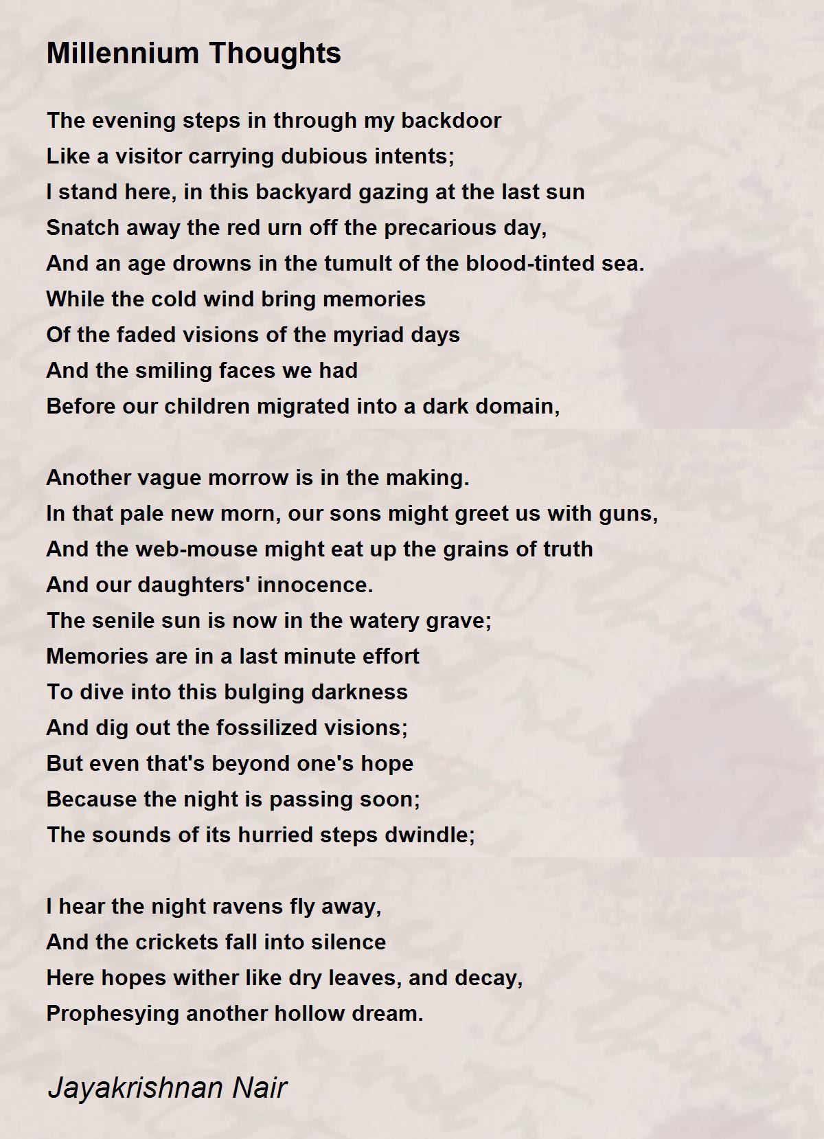 A very beautiful and thought inducing poem.