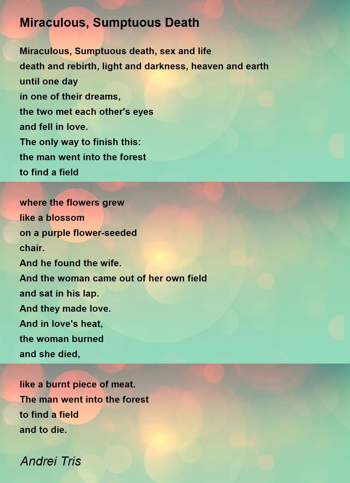 Miraculous, Sumptuous death, sex and life
