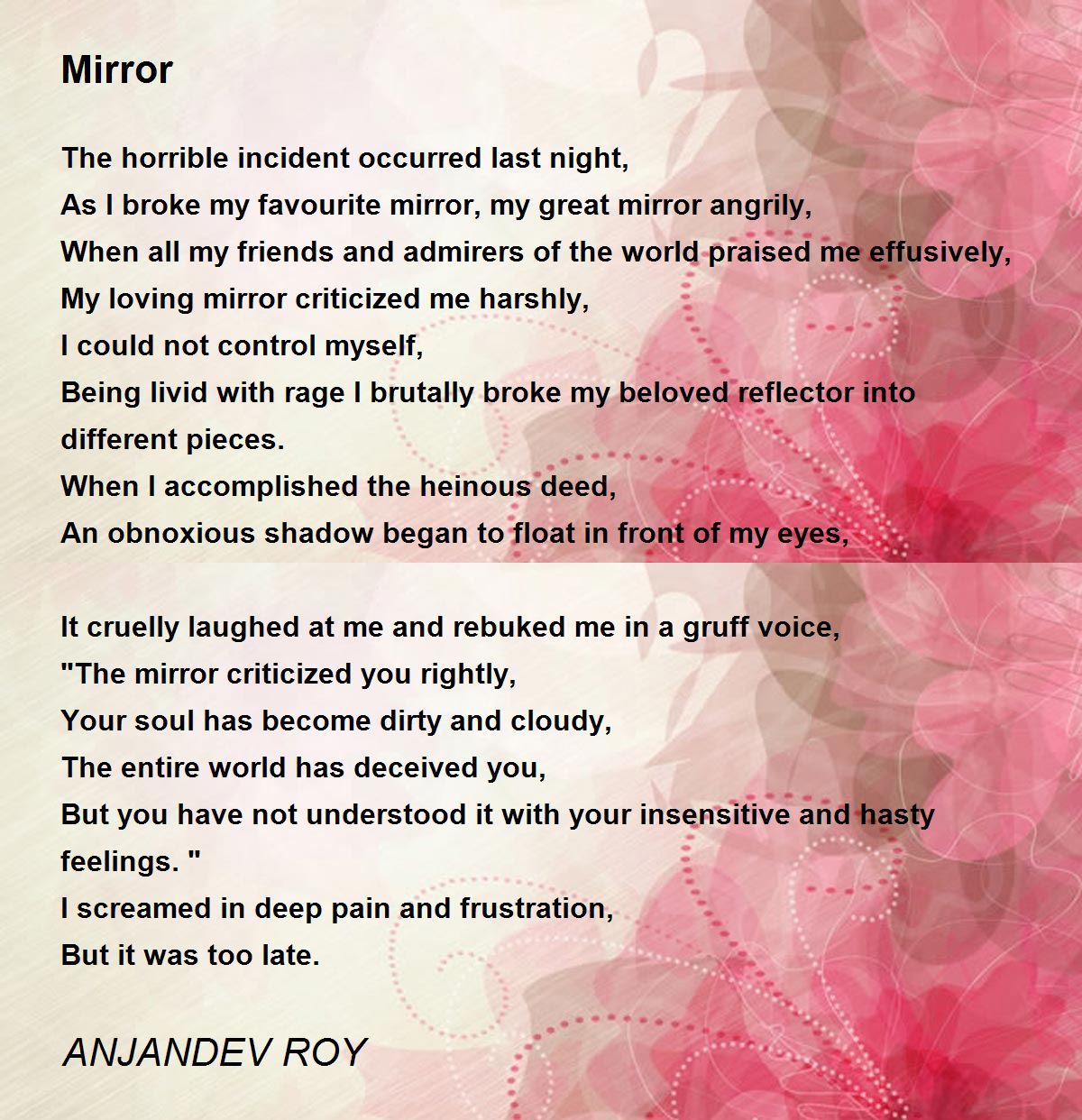 As I broke my favourite mirror, my great mirror angrily,