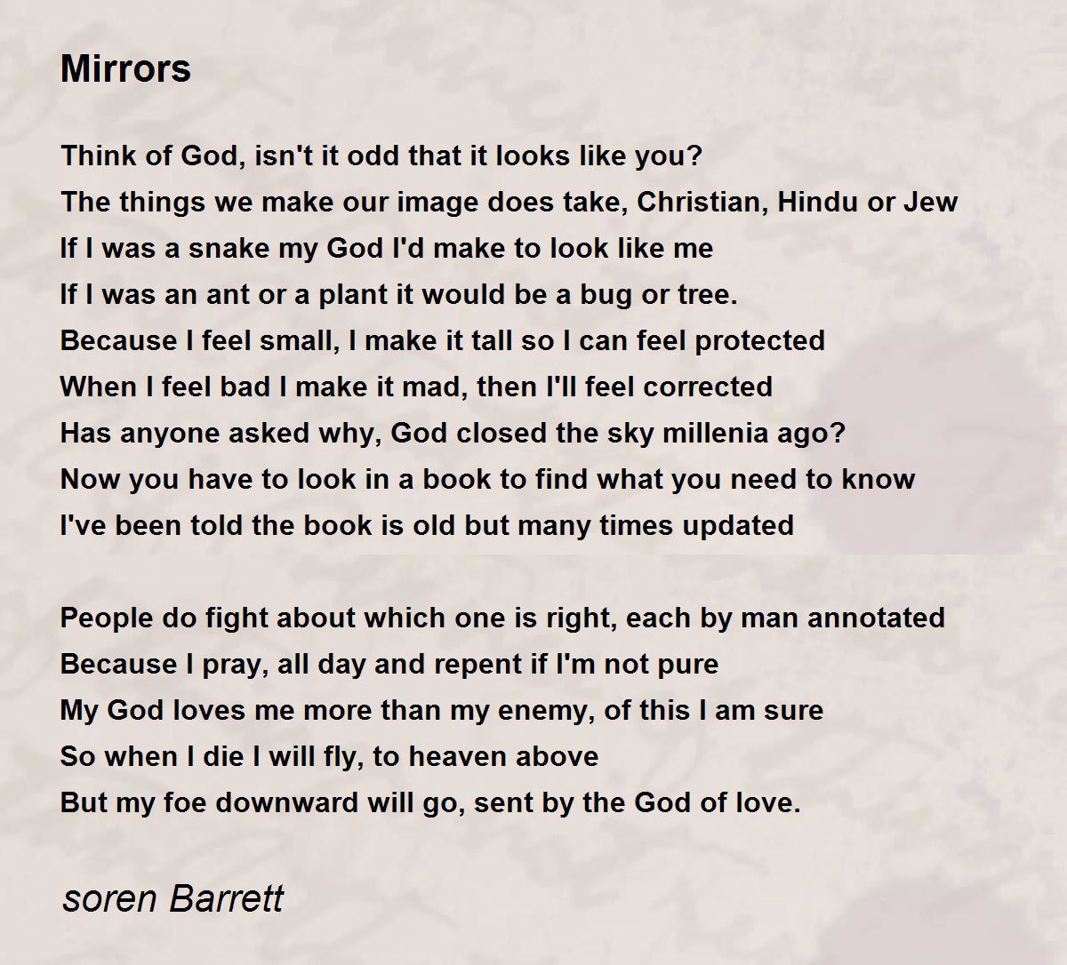 Think of God, isn't it odd that it looks like you?