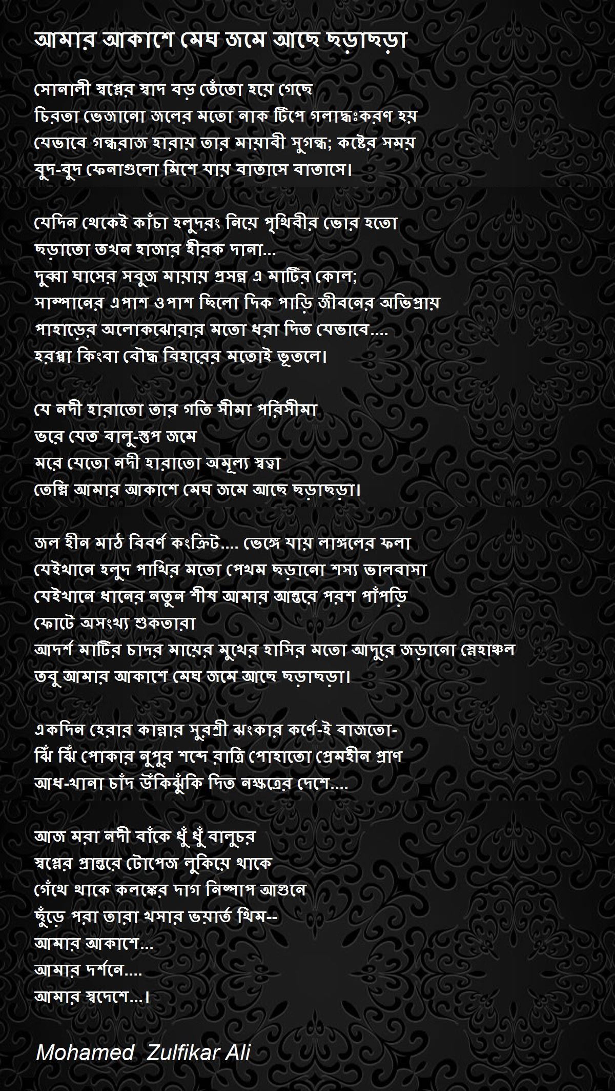 তেম্নি আমার আকাশে মেঘ জমে আছে ছড়াছড়া।