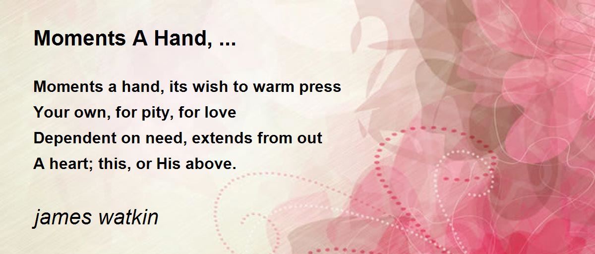 Moments a hand, its wish to warm pressYour own, for pity, for loveDependent on need, extends from outA heart; this, or His above.