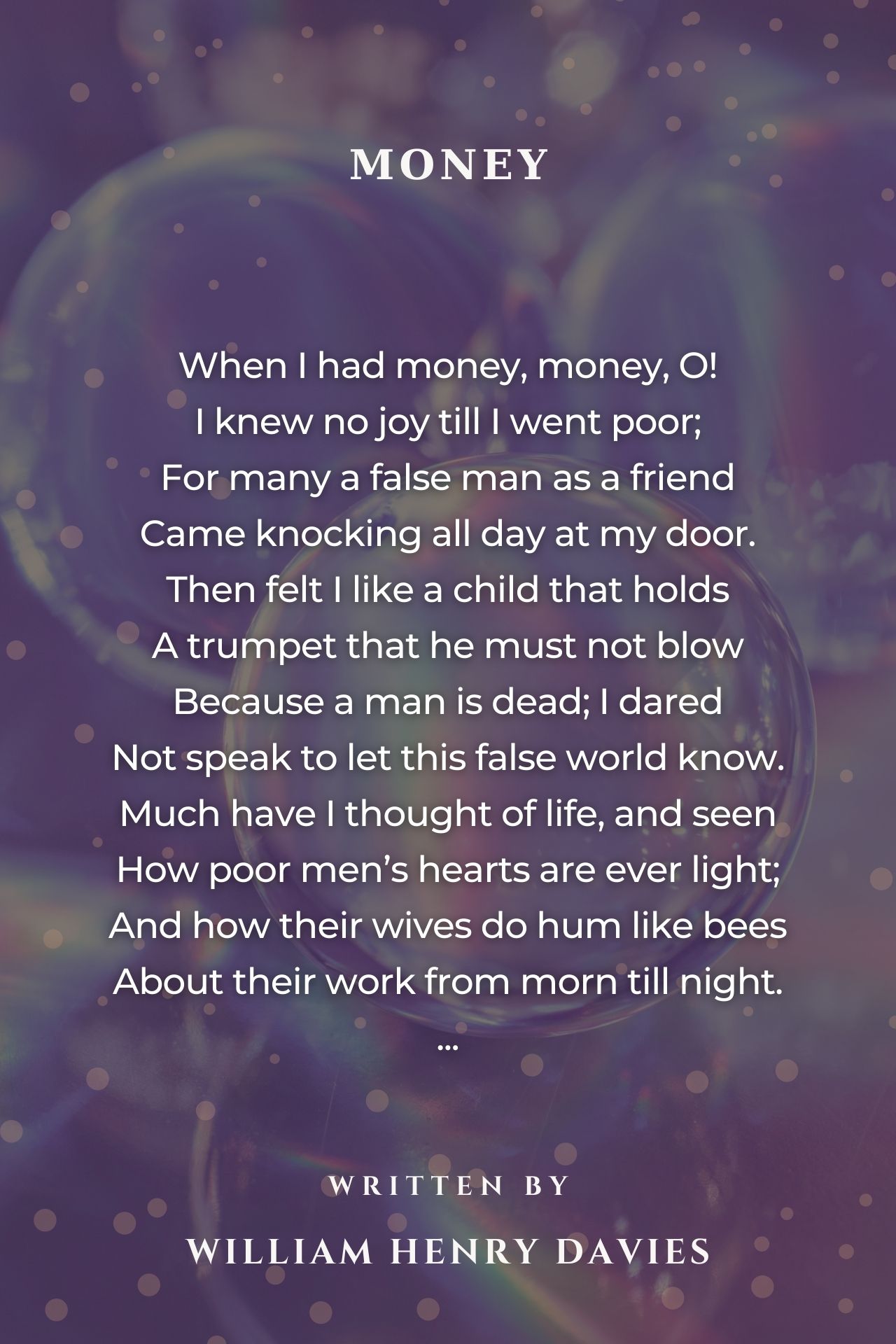 When I had money, money, O! My many friends proved all untrue; But now I have no money, O! My friends are real, though very few....///great 10++++++++++++++++++++++