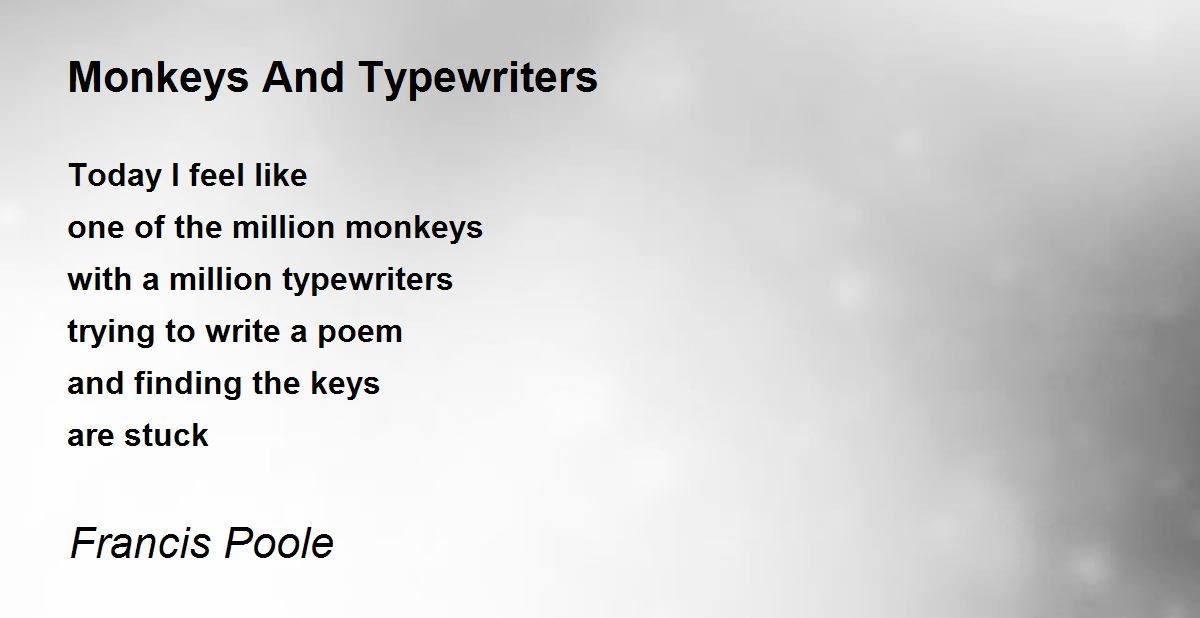Today I feel like one of the million monkeys with a million typewriters trying to write a poem and finding the keys are stuck