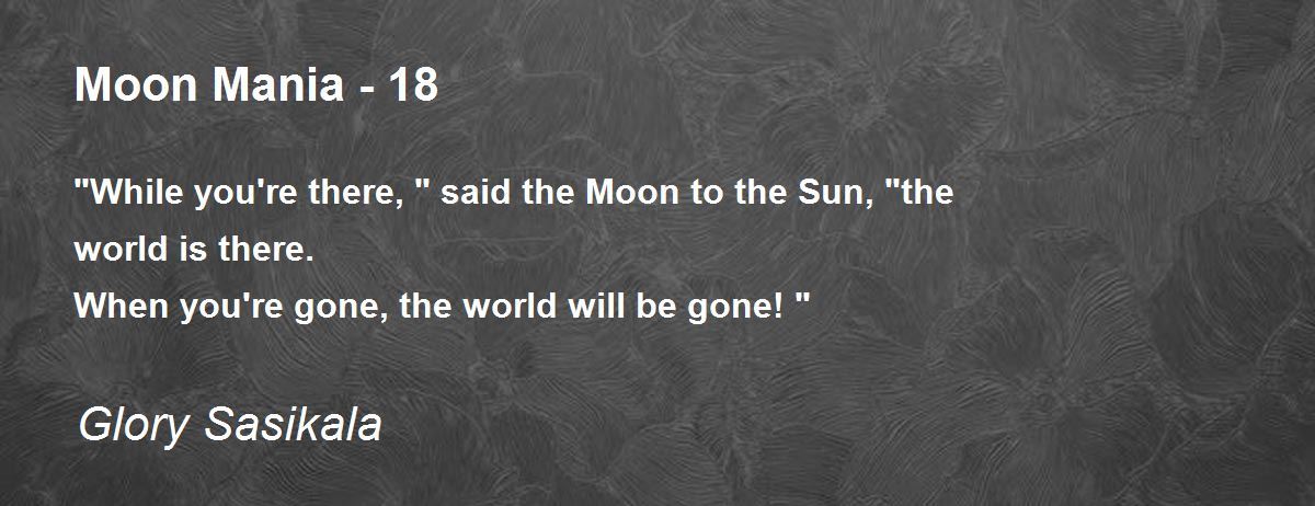 "While you're there, " said the Moon to the Sun, "the world is there.