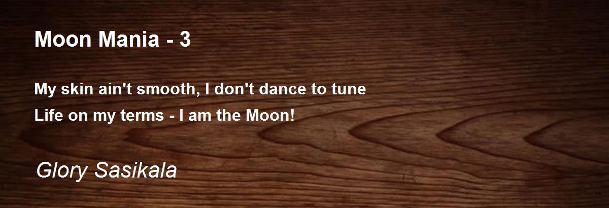 My skin ain't smooth, I don't dance to tune Life on my terms - I am the Moon!