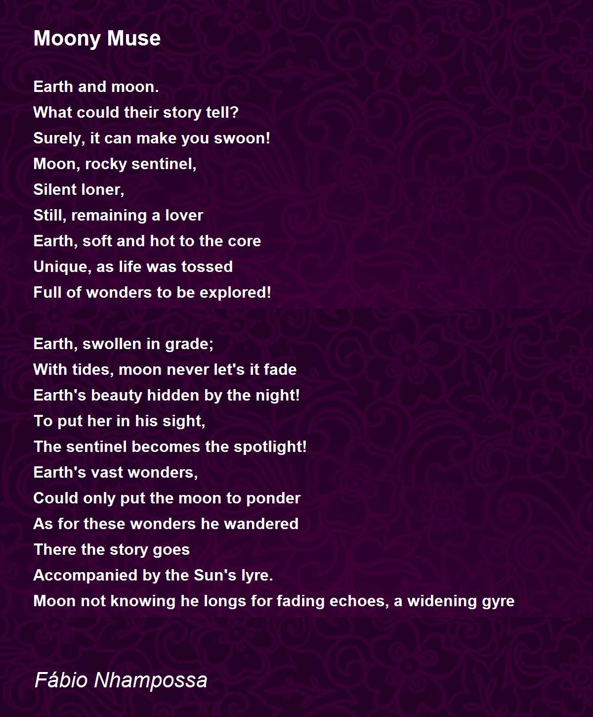 Moon not knowing he longs for fading echoes, a widening gyre