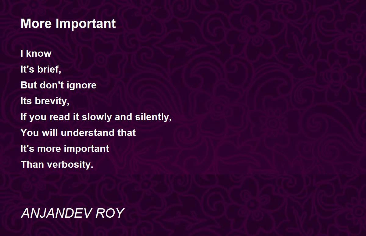 It's more important than verbosity........precious words dear Anjandev! An excellent work.........10+++++