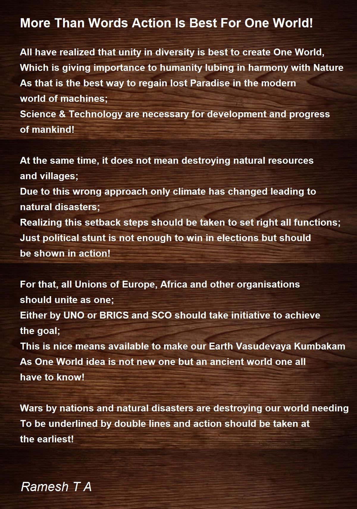 Wars by nations and natural disasters are destroying our world needing To be underlined by double lines and action should be taken at the earliest!