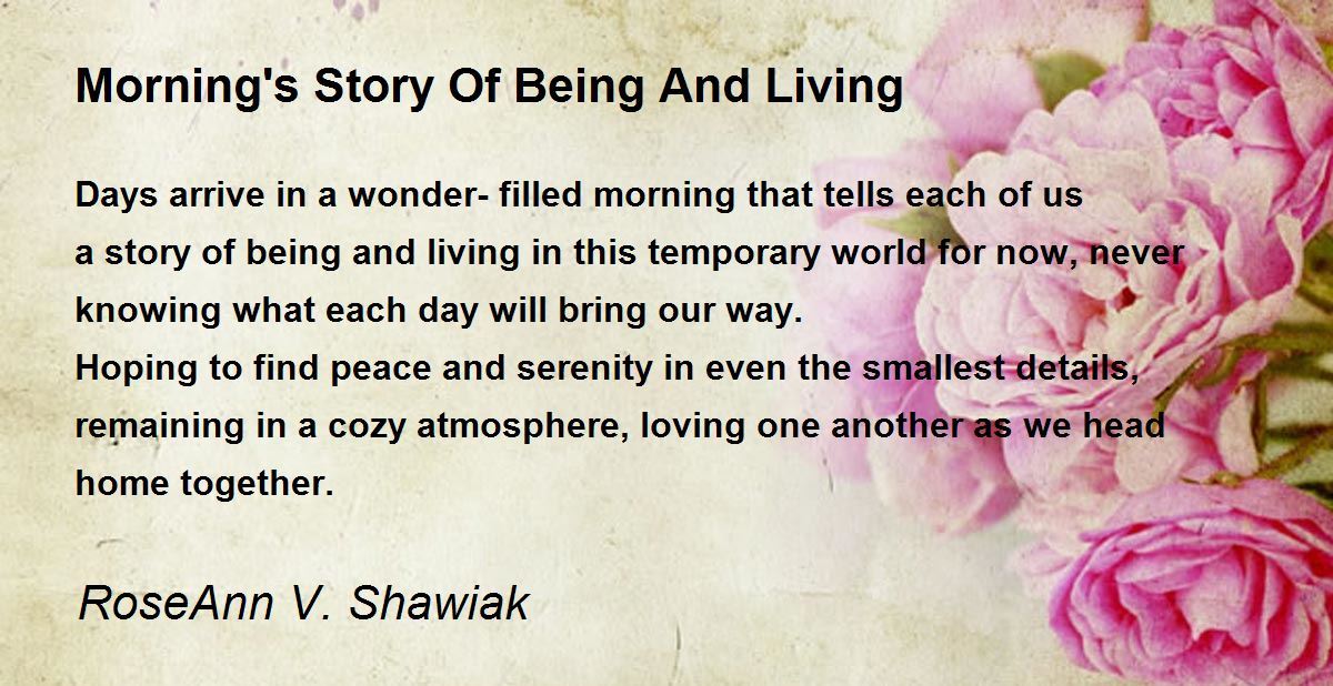 Days arrive in a wonder-filled morning that tells each of us a story of being and living in this temporary world for now, never knowing what each day will bring our way.