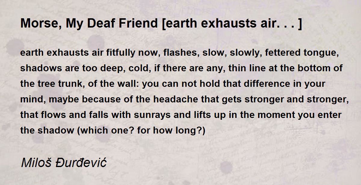 earth exhausts air fitfully now, flashes, slow, slowly, fettered tongue,