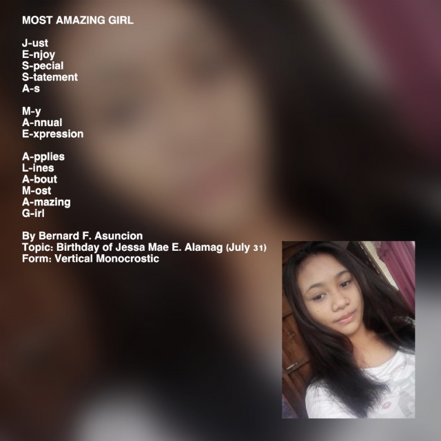 Topic: Birthday of Jessa Mae E. Alamag (July 31)