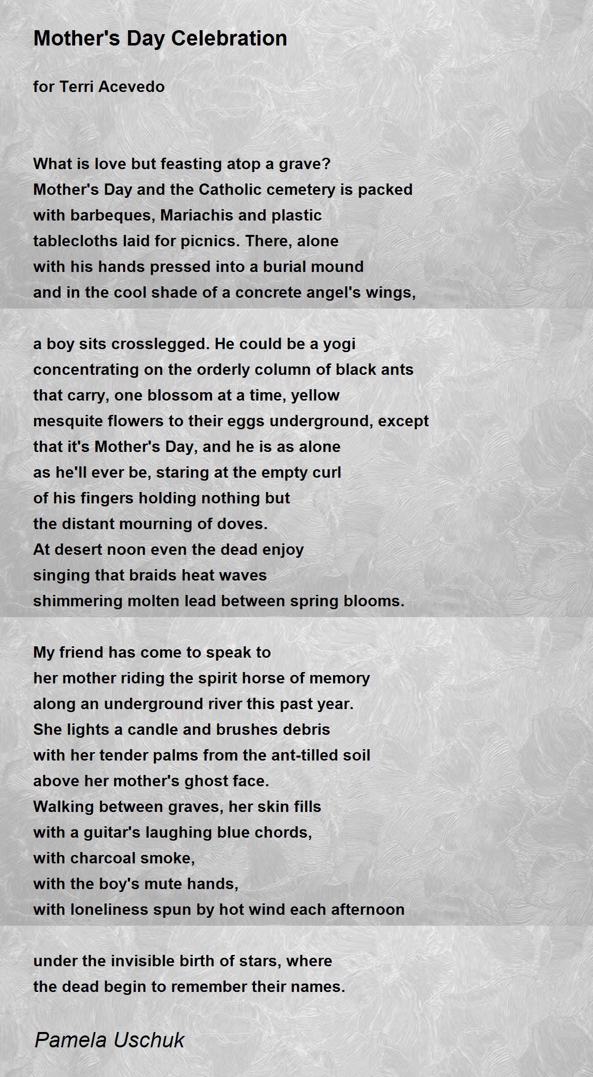 Walking between graves, her skin fills