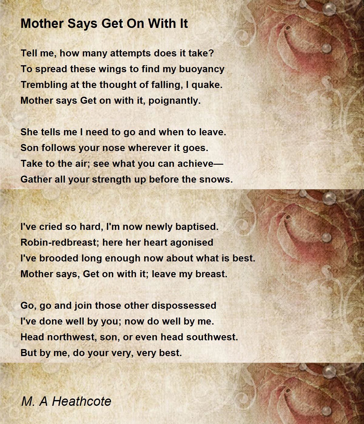 Mother says Get on with it, poignantly.