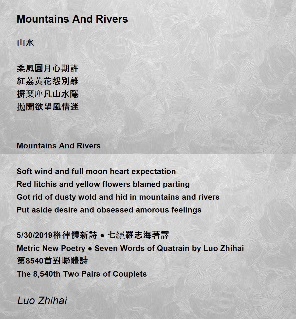 Metric New Poetry ● Seven Words of Quatrain by Luo Zhihai