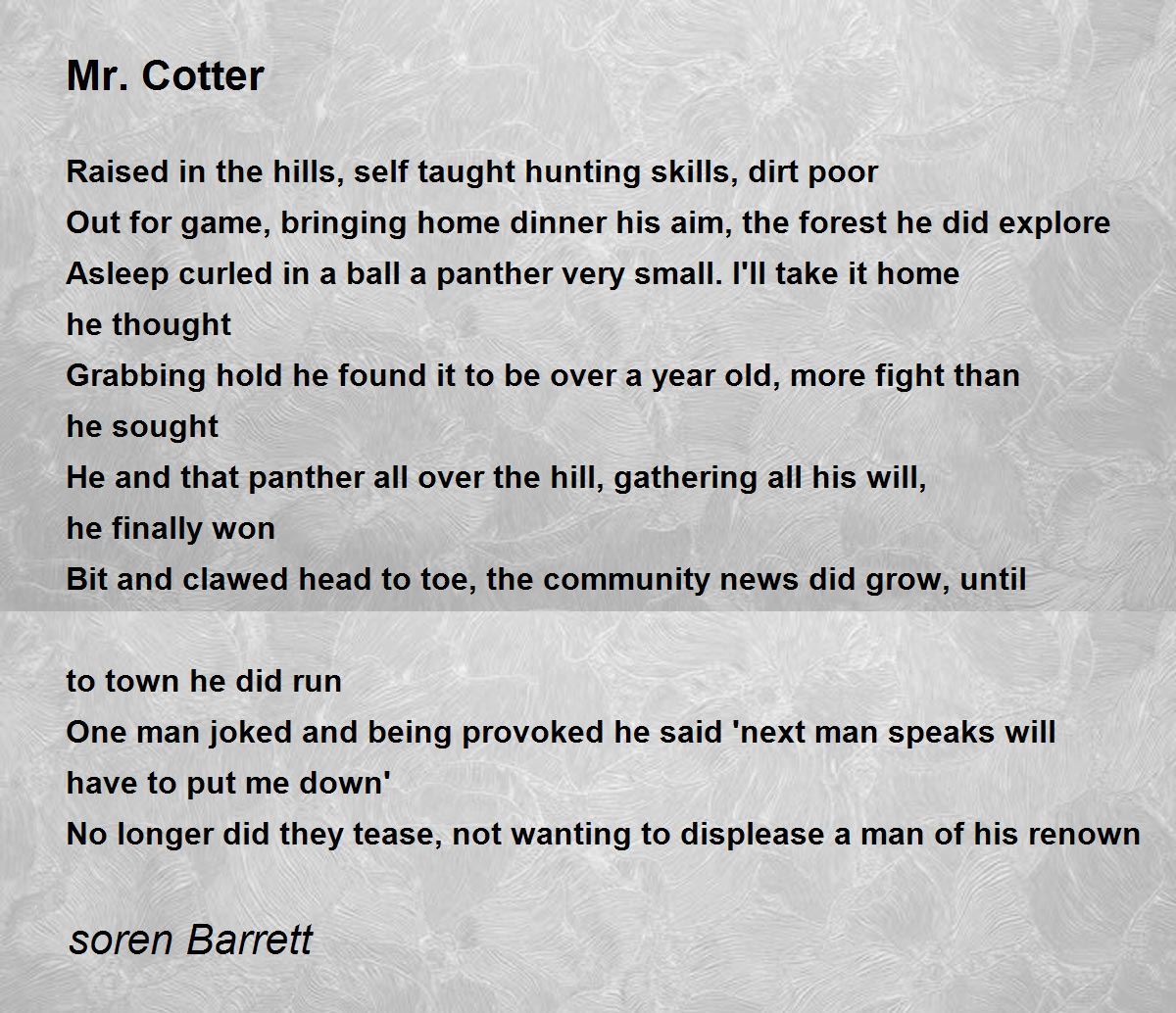 He and that panther all over the hill, gathering all his will, he finally won