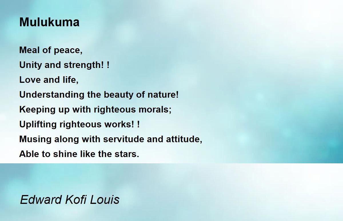 WOW! Meal of Peace. Loveliest and Greatest Dedication to Mulukuma! I always enjoy your gorgeous unique words. Peace to you,5 stars. Most valuable Dedication.