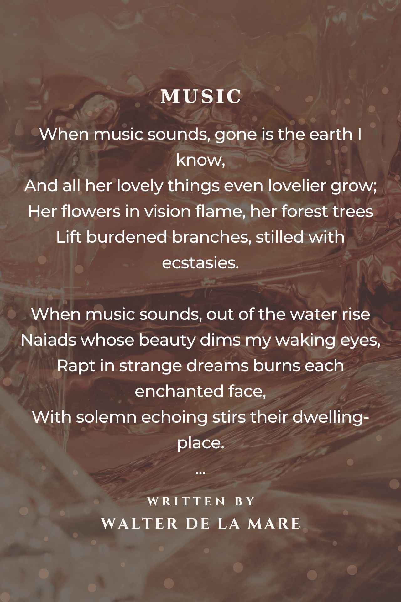 When music sounds, gone is the earth I know,