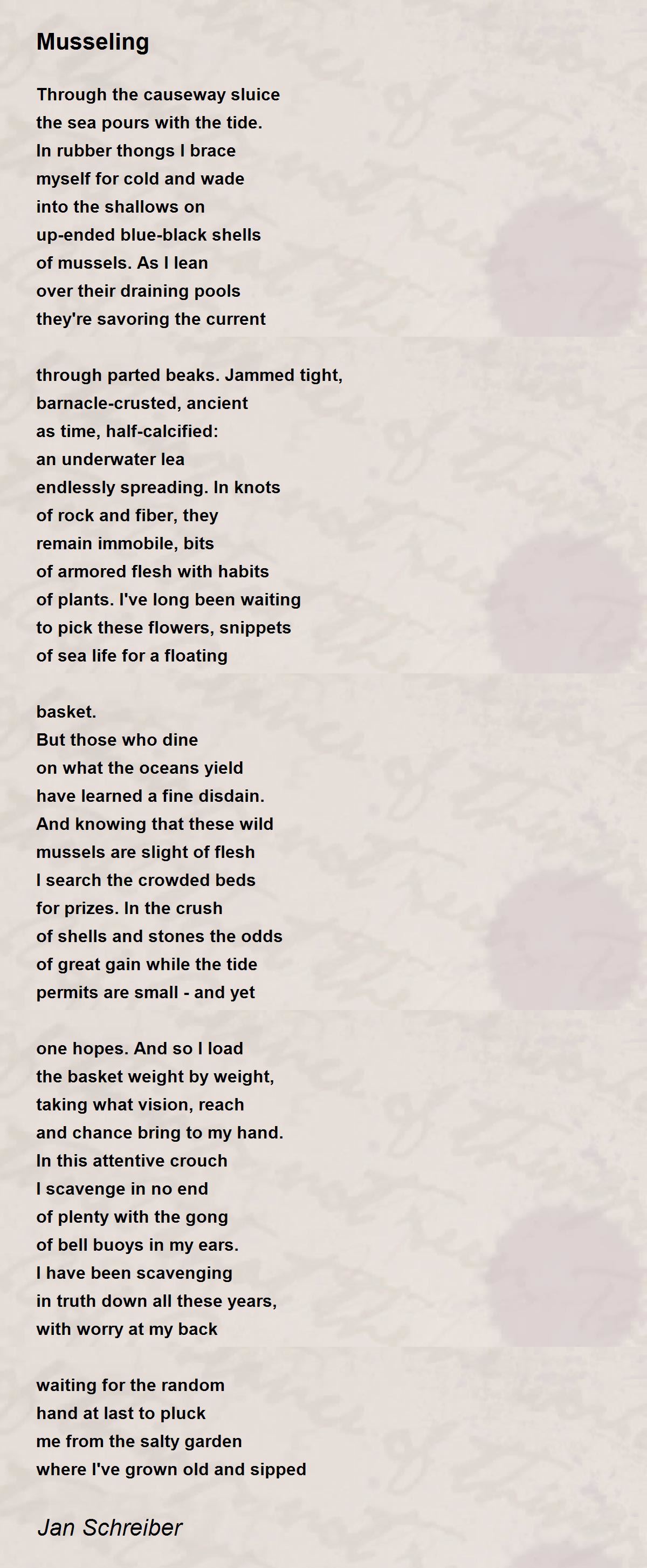 of mussels. As I lean