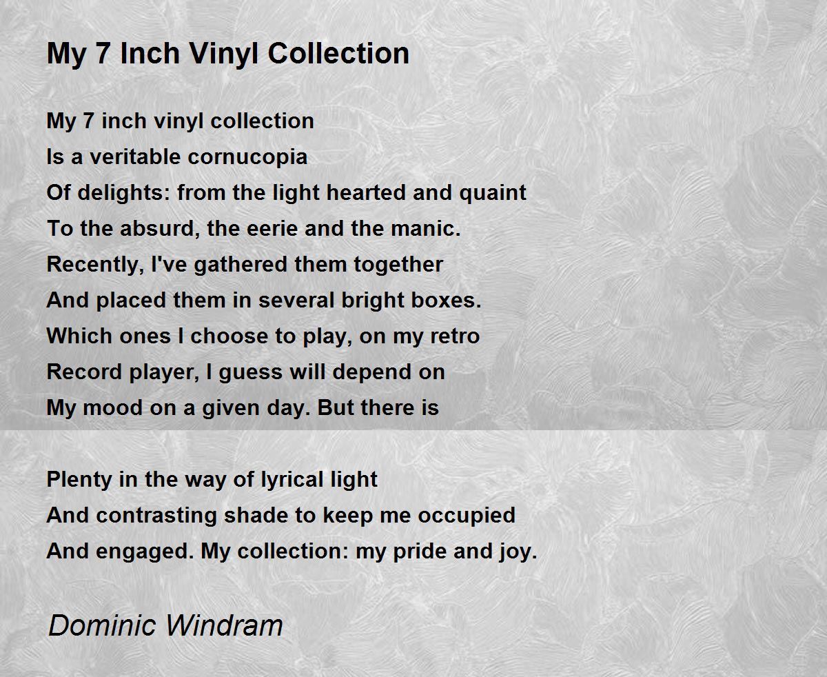 Mine's up in the loft gathering dust along with two record players. I should make the effort and get it all down and play them again. For your enchanted poem has made me remember that incredible varnishy smell that an album or single emits whilst reading its sleeve notes.10+ and thanks for the good and now retrieved memories kind sir.