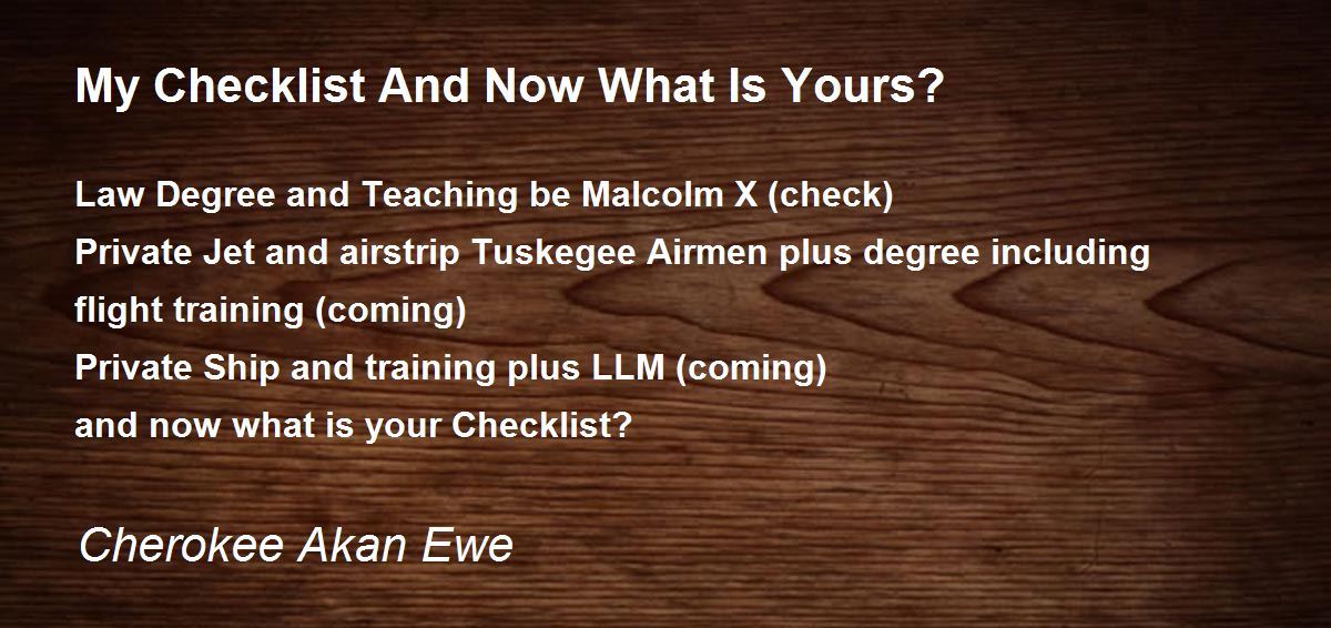 and now what is your Checklist?