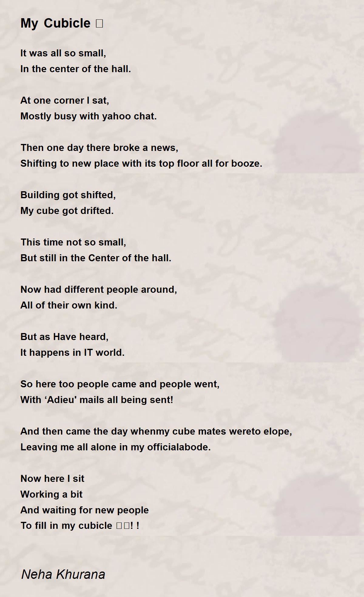 And then came the day whenmy cube mates wereto elope,