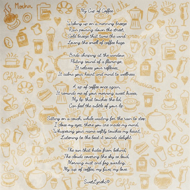 This poem is like a blessed and deightful coffee hahaha though i am not a coffee drinker but the words, the idea and concept is smooth like a late' or smoothie cappuchino drinks...it is a sweet penning work! .keep it up