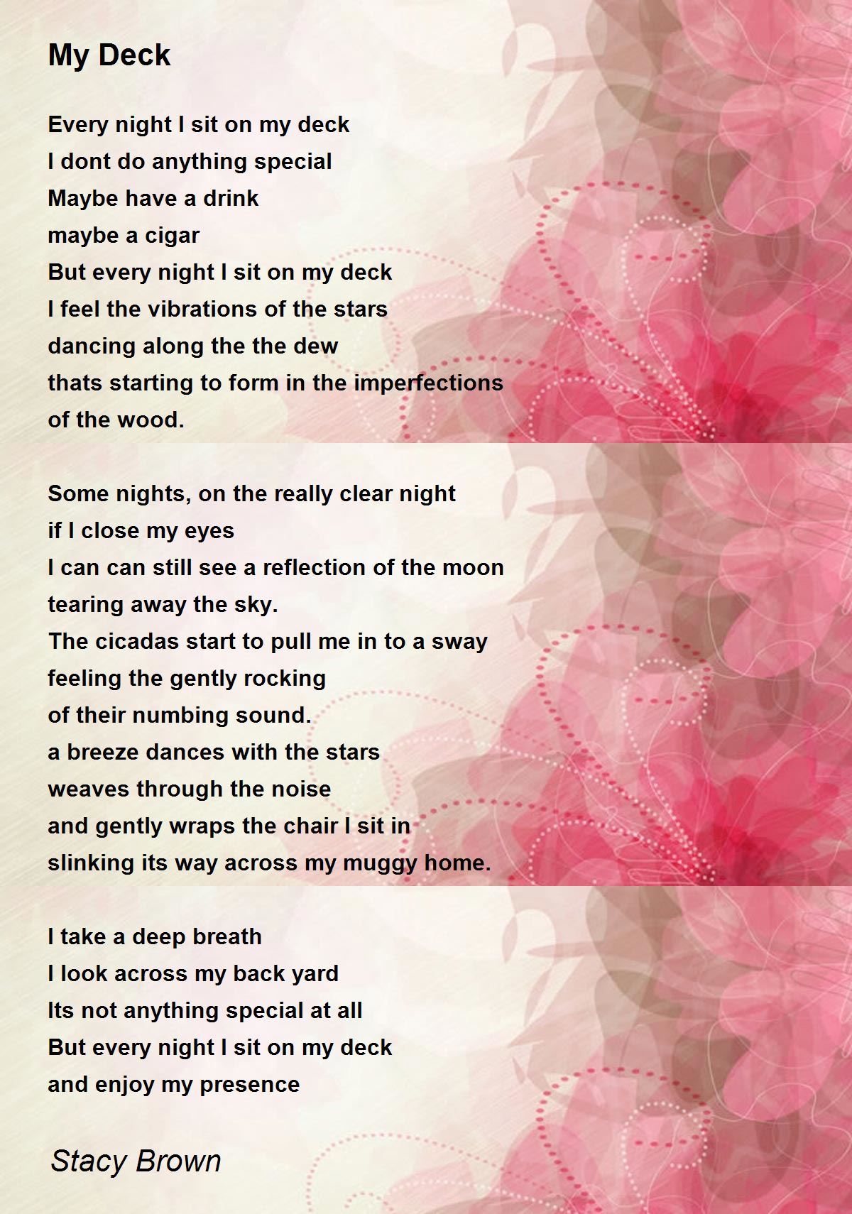 But every night I sit on my deck
