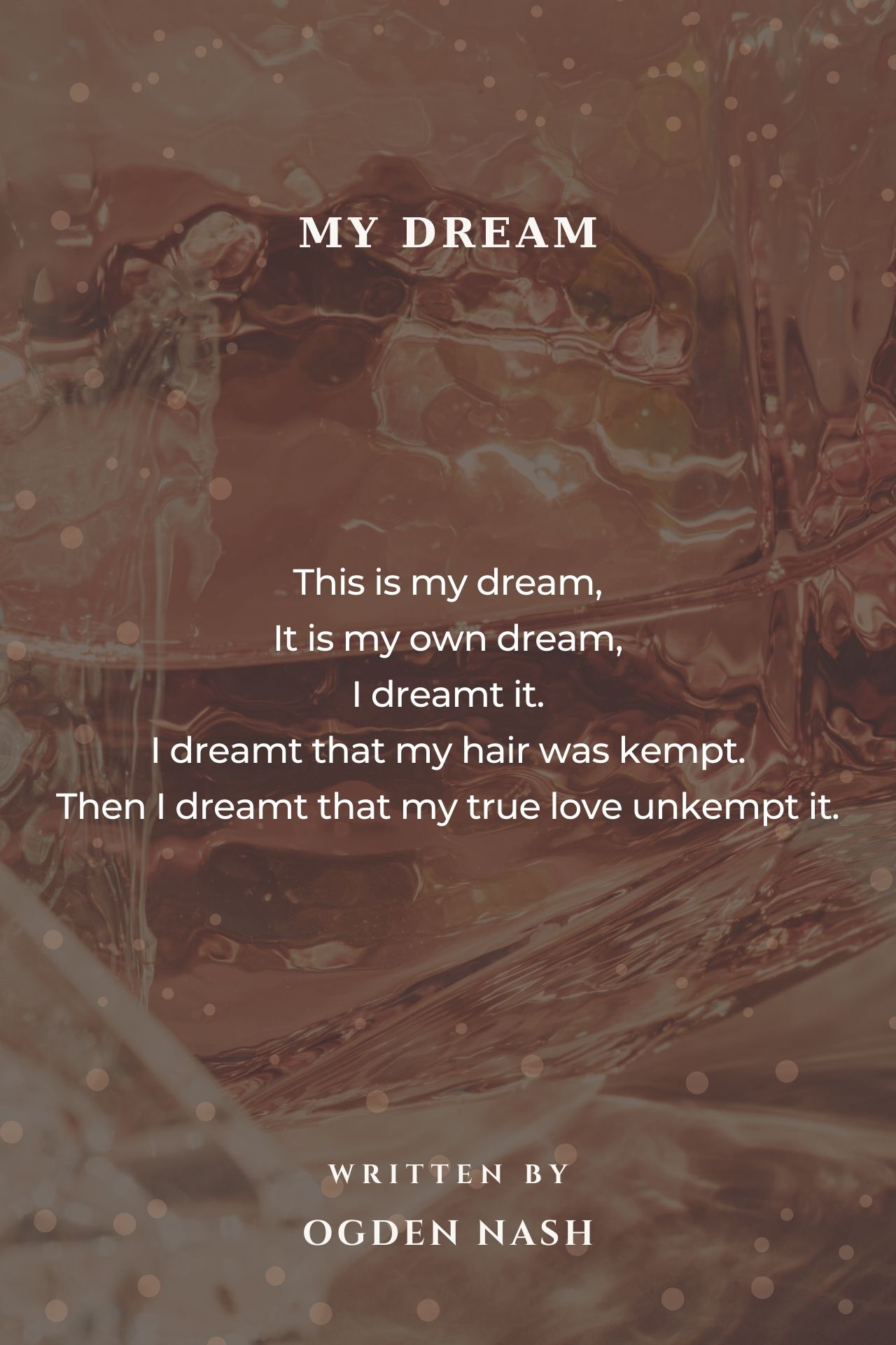 Then I dreamt that my true love unkempt it.