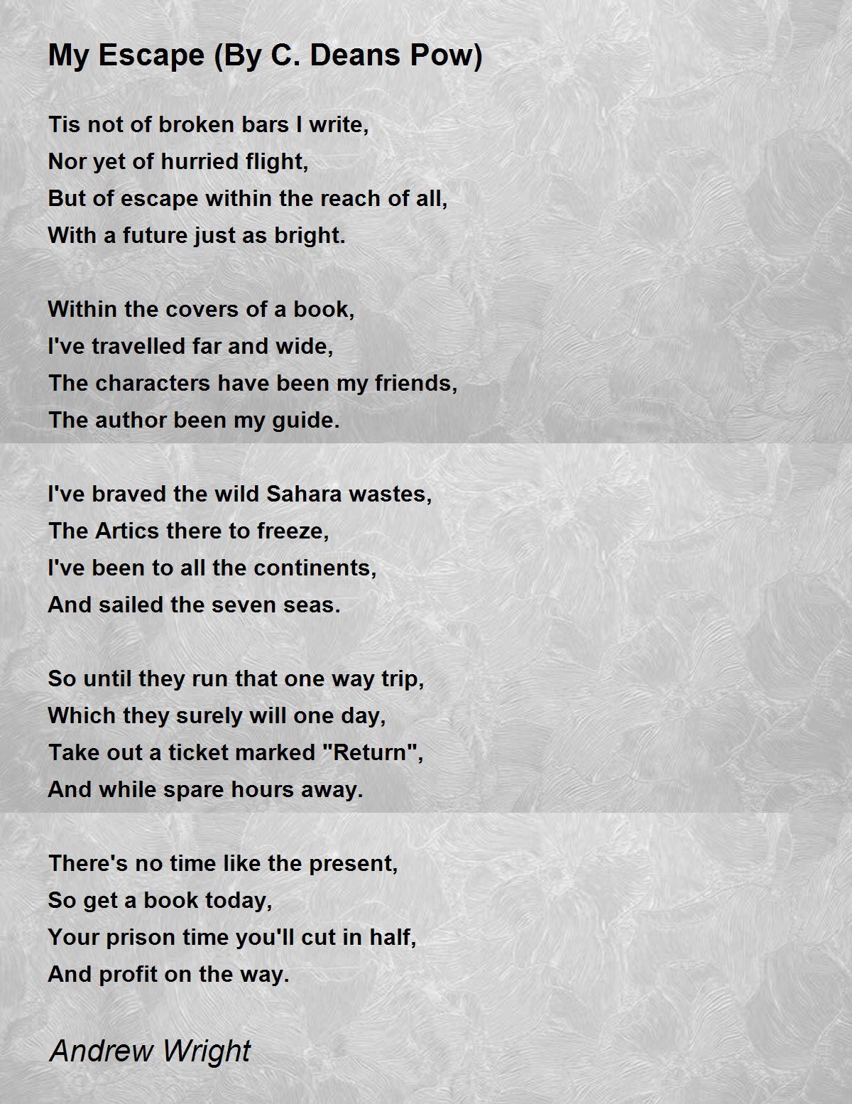 Tis not of broken bars I write,