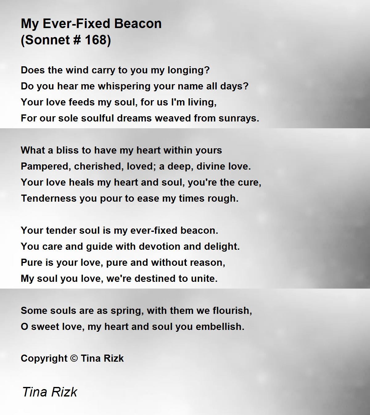 Your tender soul is my ever-fixed beacon.
