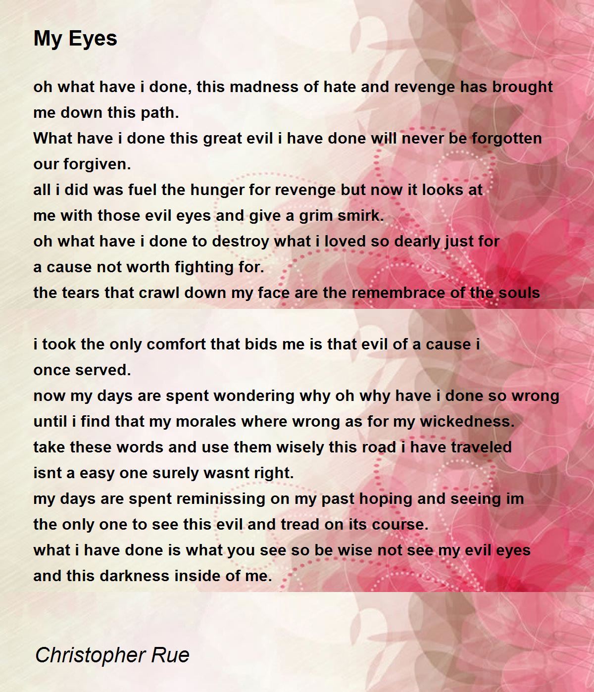 all i did was fuel the hunger for revenge but now it looks at me with those evil eyes and give a grim smirk.