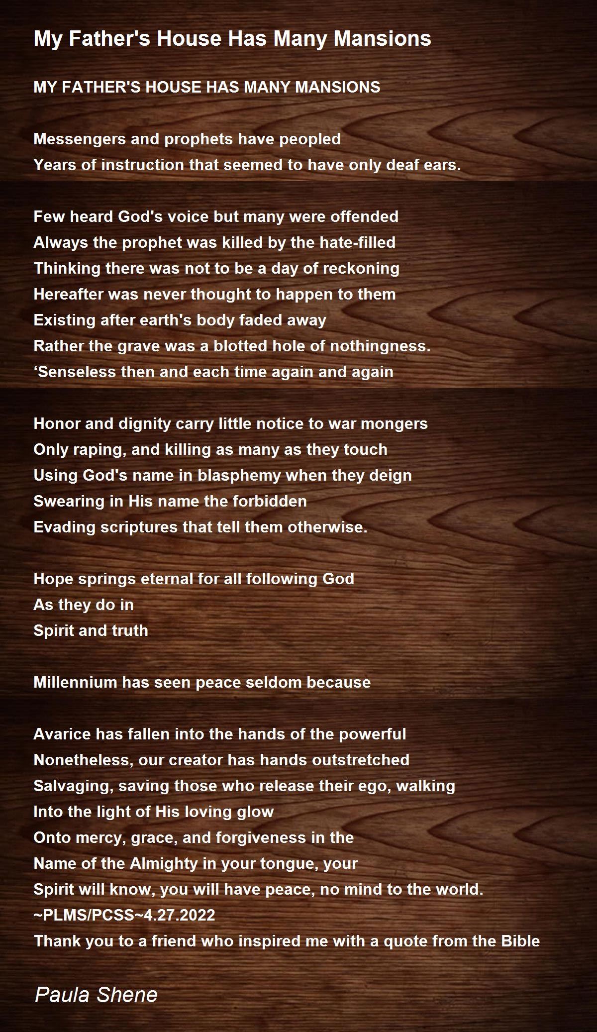 MY FATHER'S HOUSE HAS MANY MANSIONS