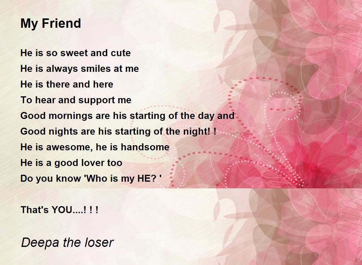 He is awesome, he is handsome He is a good lover too Do you know 'Who is my HE? ' That's YOU....! ! ! i smiled as i read your poem dear poetess Deepa.......... deepam means light.. is nt it? light of love you know. that is why u write such love poems..... God bless you for this poem. tony
