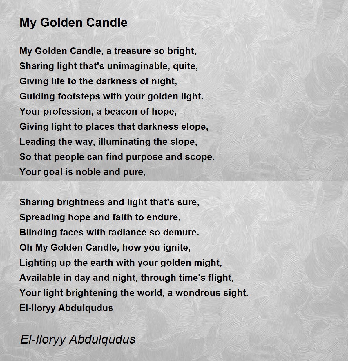 Oh My Golden Candle, how you ignite,