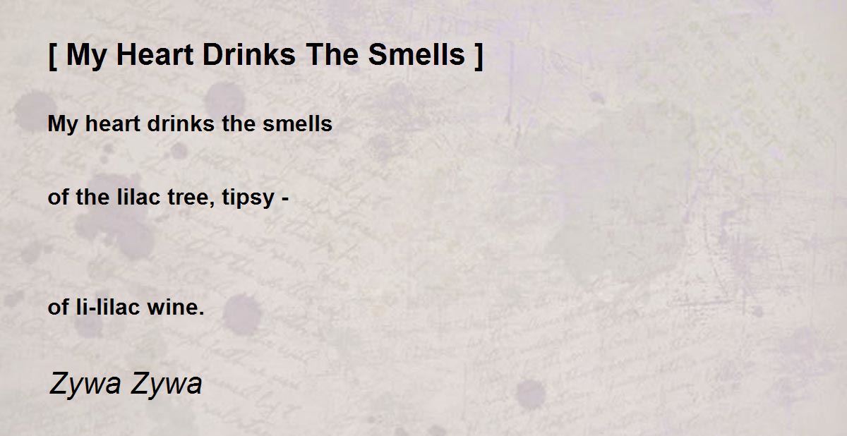 My heart drinks the smells of the lilac tree, tipsy - of li-lilac wine.
