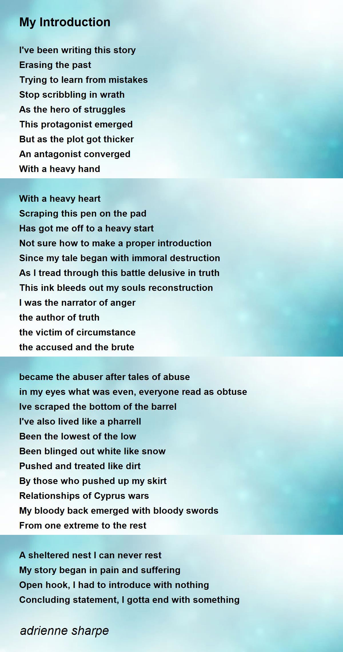 My story began in pain and suffering