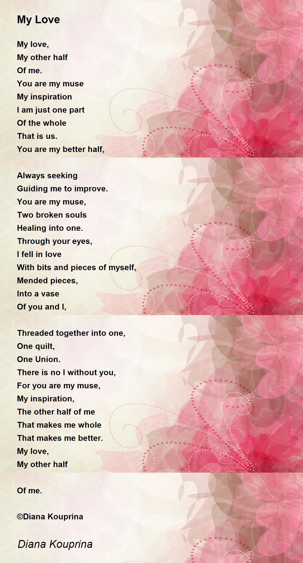 One of the most beautiful and moving Love poems, EVER! True and deep; y emotional Love at its best.