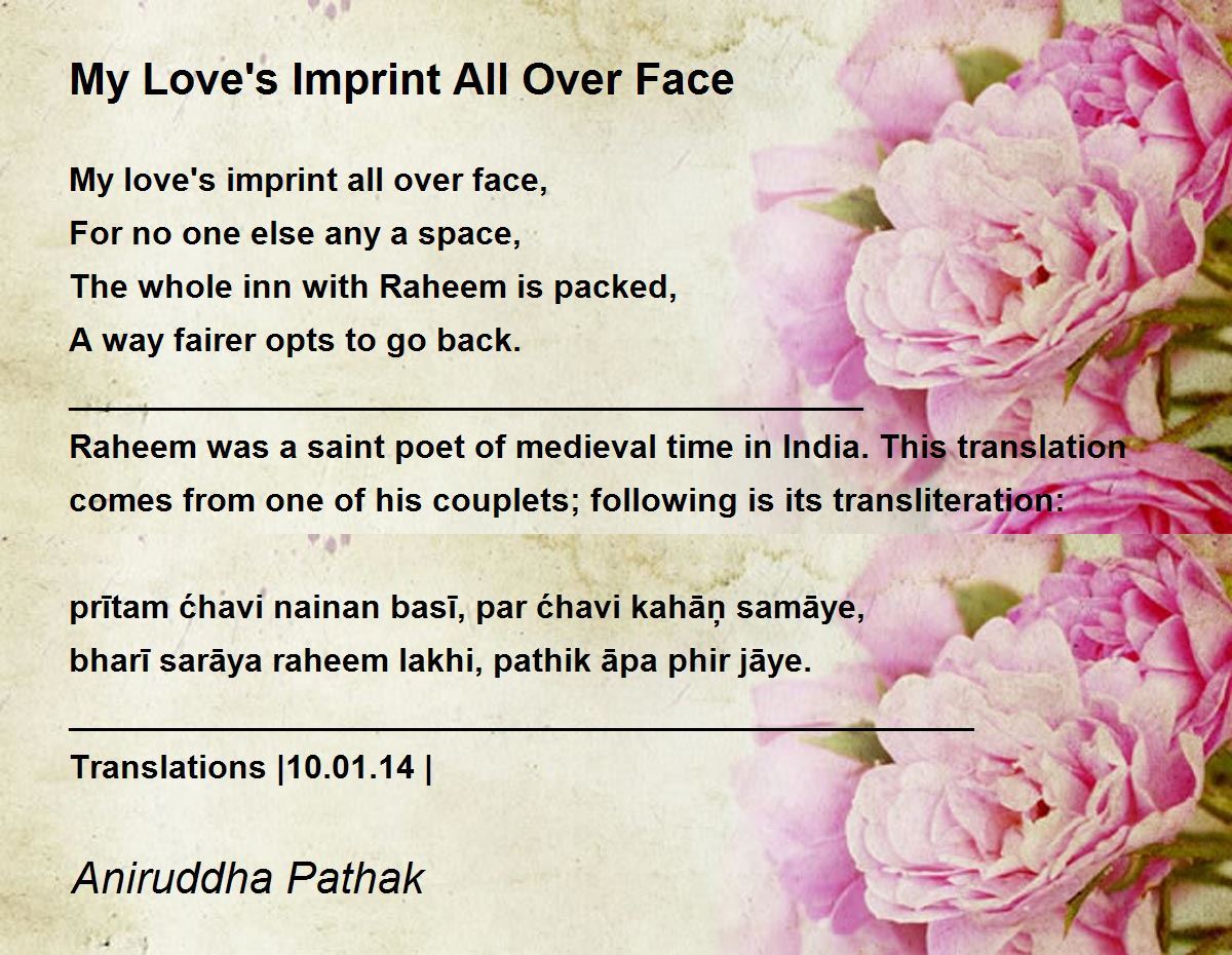 Raheem was a saint poet of medieval time in India. This translation comes from one of his couplets; following is its transliteration:
