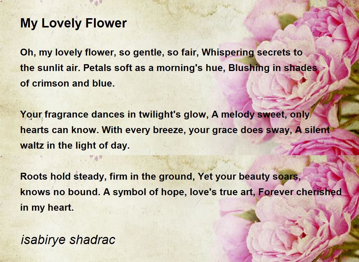 Oh, my lovely flower, so gentle, so fair, Whispering secrets to the sunlit air. Petals soft as a morning's hue, Blushing in shades of crimson and blue.
