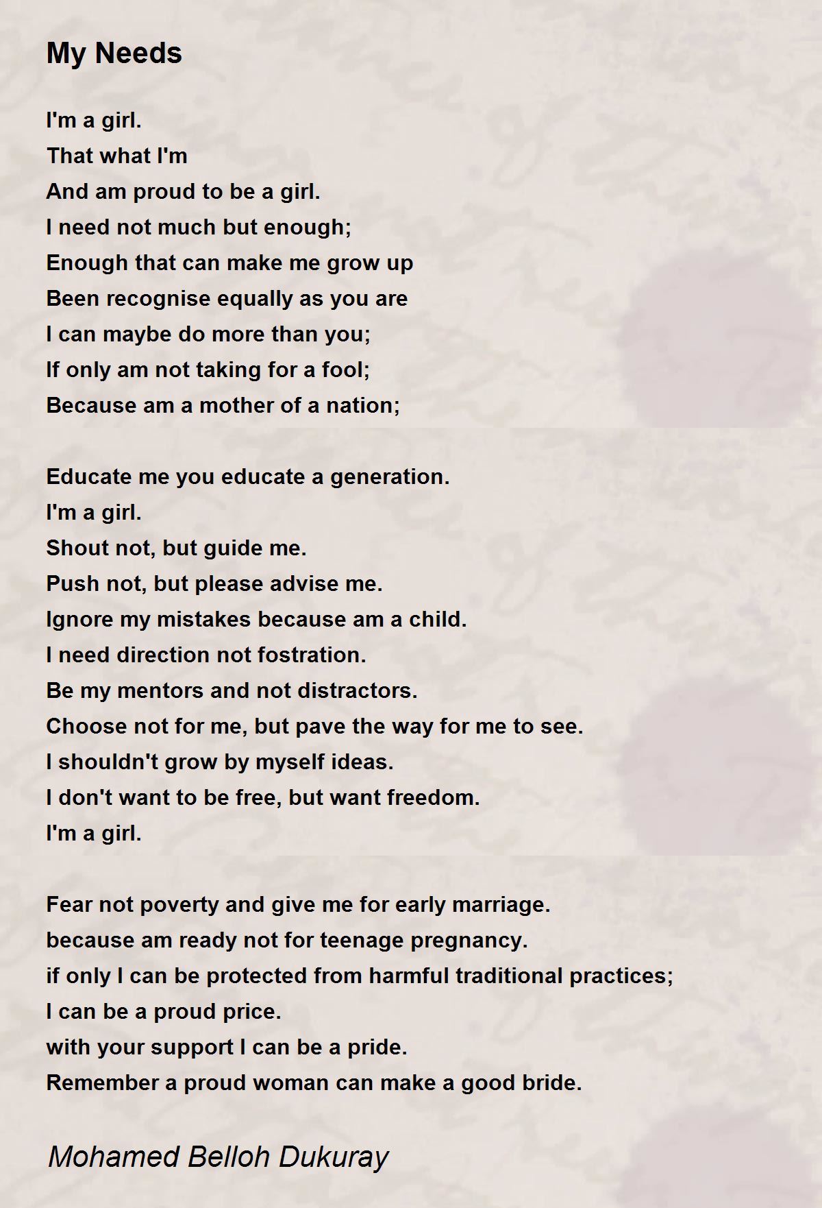 Fear not poverty and give me for early marriage.