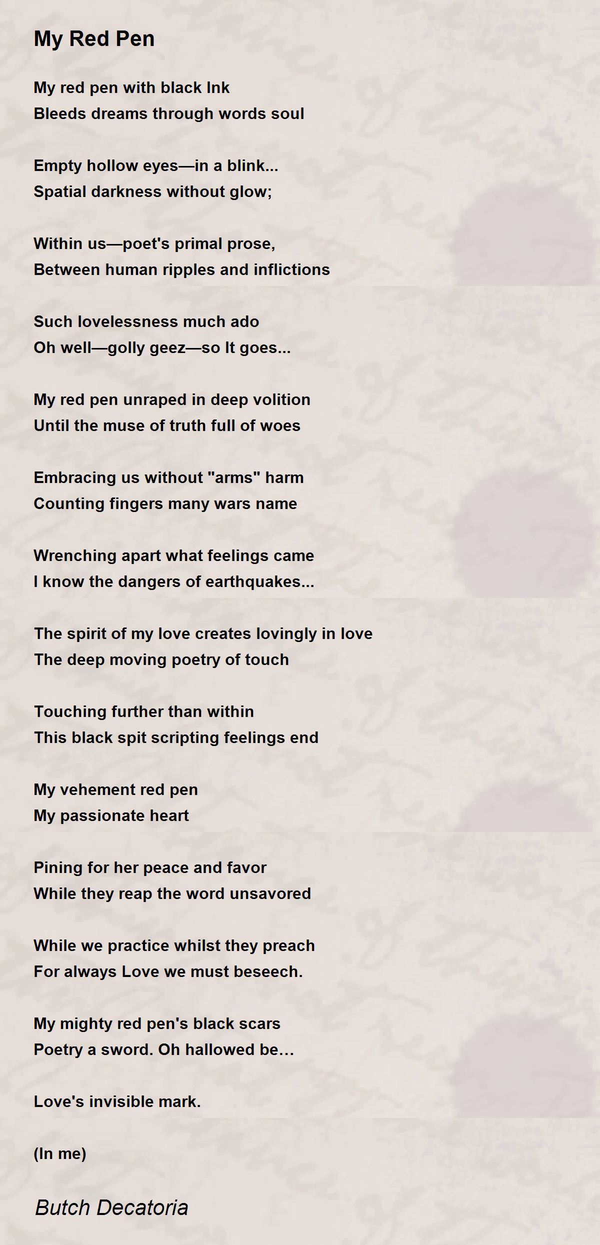 My red pen unraped in deep volition