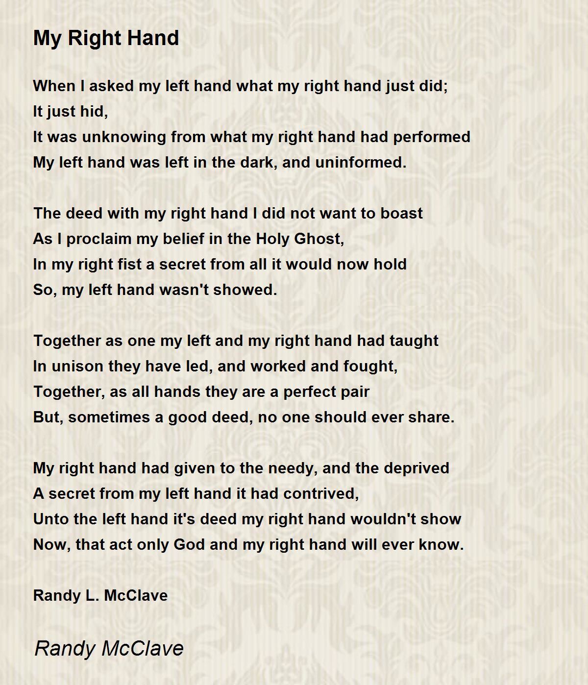 Unto the left hand it's deed my right hand wouldn't show